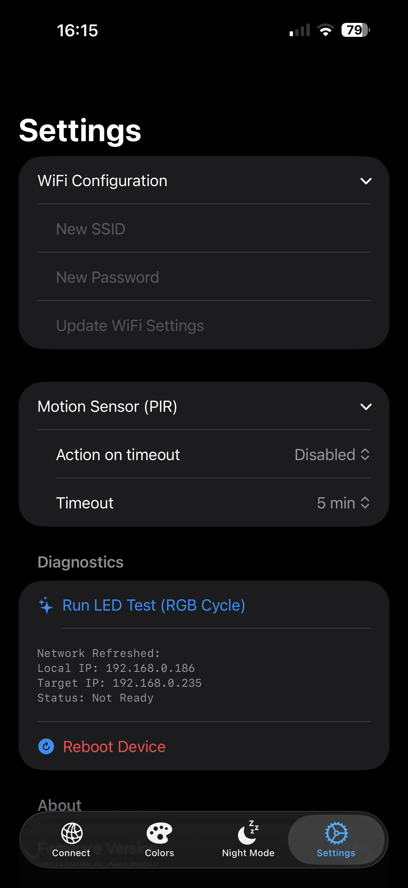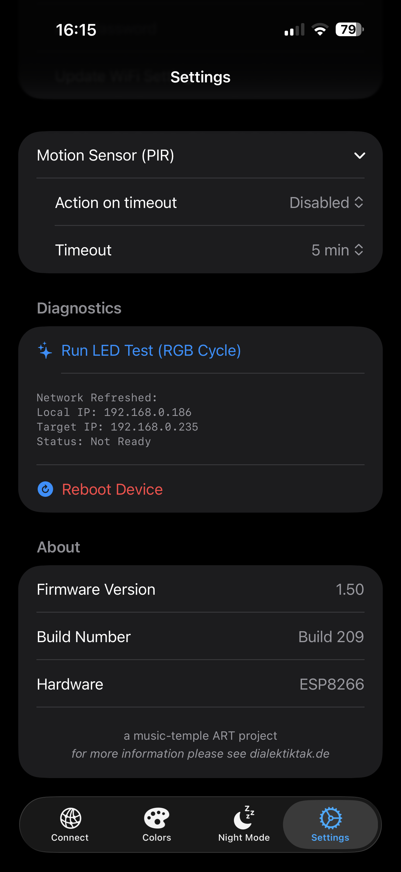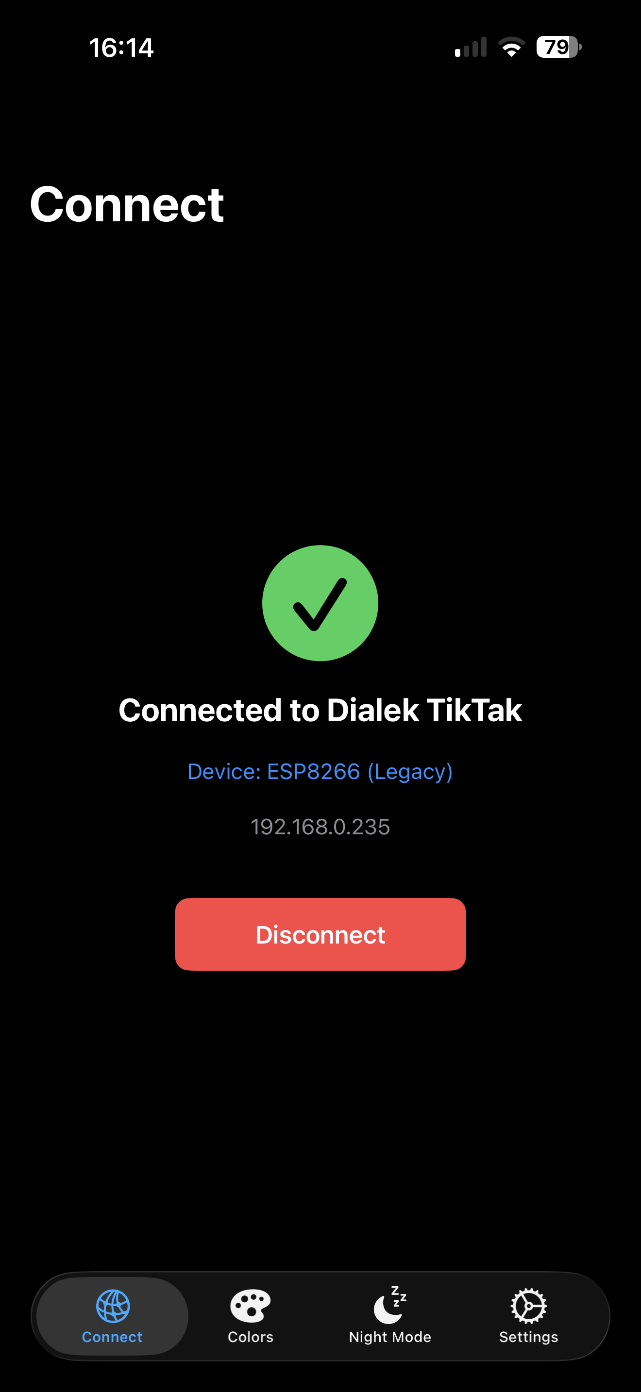 - Disconnect: Trennt die App von der aktuellen IP, um nach einer anderen Uhr zu suchen.