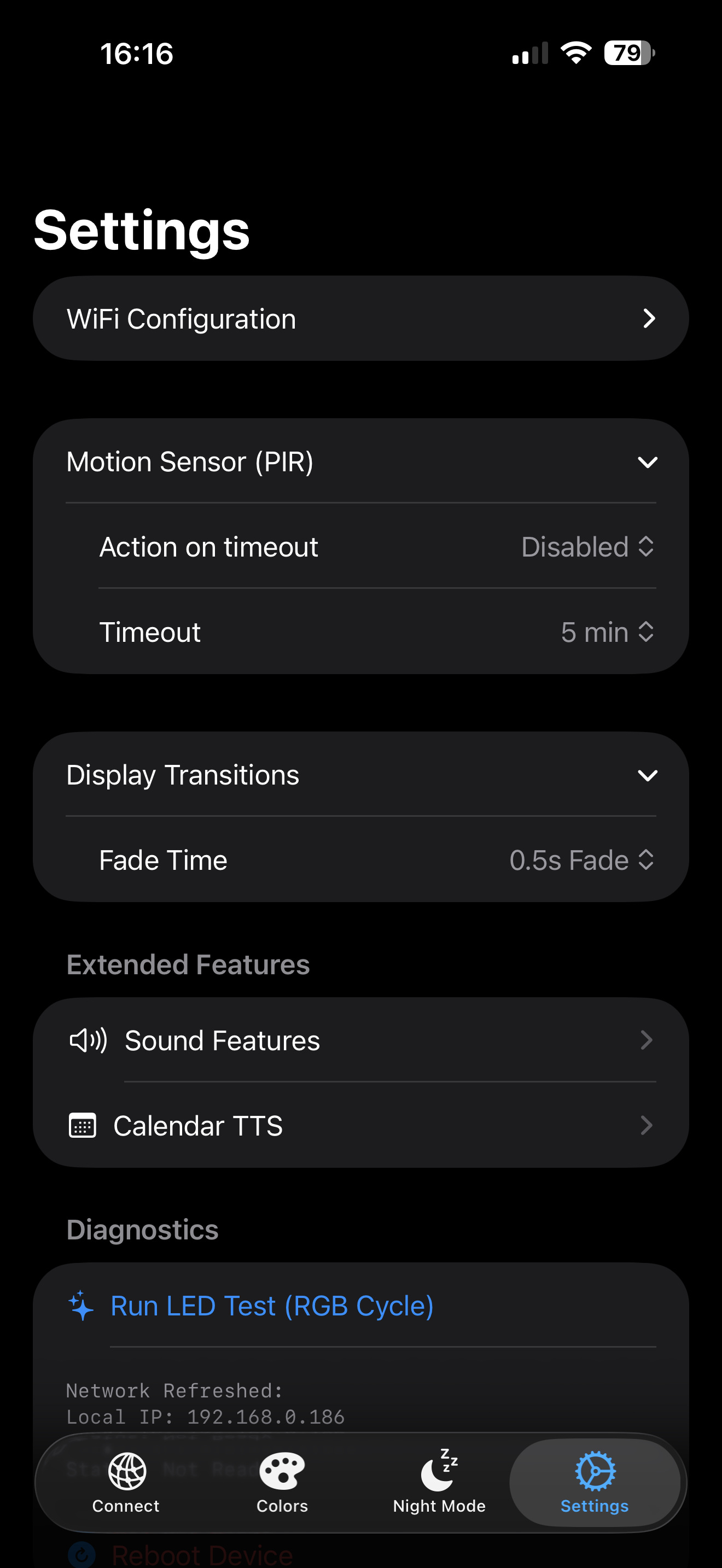Feinabstimmung Ihres Schlafplans und der Nachtsichtfarben. Änderungen hier wirken sich sofort auf die Hardware aus.